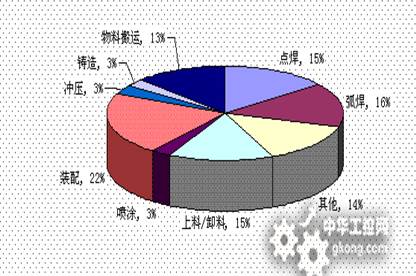 在我国,工业机器人的最初应用是在汽车和工程机械行业,主要用于汽车及工程机械的喷涂及焊接。目前,由于机器人技术以及研发的落后,工业机器人还主要应用在制造业,非制造业使用的较少。据统计,近几年国内厂家所生产的工业机器人有超过一半是提供给汽车行业。可见,汽车工业的发展是近几年我国工业机器人增长的原动力之一。【5】
