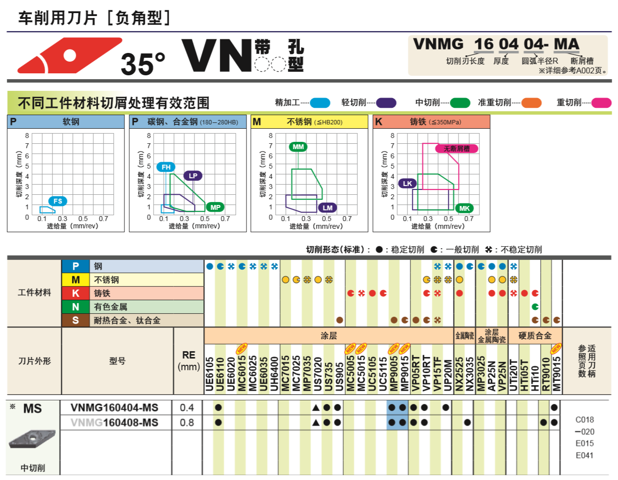 三菱-车削刀片-负角型-35°-VN带孔型-MS断屑槽型-钢件-中切削-一般切削系列-1片