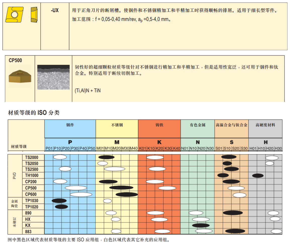 山高-车削刀片-刀片形状C型-刀片后角7°-夹持和断屑槽T型-正角刀片-断屑槽UX系列-镀层CP500-1片