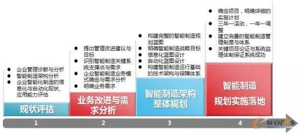 e-works建议,企业在推进智能制造的过程中,一定要明确自身的短板及需要解决的关键问题,制定合理的规划及实施计划,分期分重点,选择合适的技术、系统、设备和团队解决企业的痛点问题。