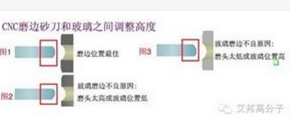 e.玻璃边沿磨边有严重的亮斑或者裂口,磨轮已经接近报废——更换砂刀