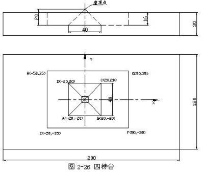 例6-1:加工图6-17中四个型腔,槽深2毫米,试编程。