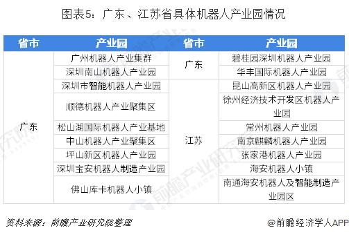 具体来看,广东省机器人产业园主要分布在深圳、广州、佛山、东莞、中山等地,其中11所产业园中6所均在深圳,占比54.5%,分布十分不均衡。而江苏机器人产业园主要分布在徐州、南京、常州、张家港、南通等地,分布相对均衡。