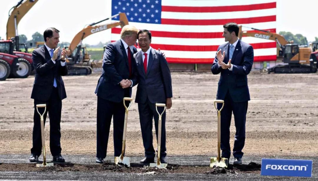 在2017年7月26日,富士康和白宫共同宣布:富士康将投资100亿美元,在威斯康星州建立一座液晶面板生产工厂。根据当时的乐观估计,工厂将创造就业岗位1.3万个,间接和衍生就业岗位2.2万个,以及施工建设岗位1万个。为此,威斯康辛州向富士康提供了45亿美元的补贴。