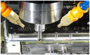 需要指出的是,为了保证切割的宽度和角度严格一致,这里还得动用一种叫激光对刀仪的东西,来把控好切边的刀纹路粗细和切边宽度大小。简单来讲,就是激光对刀先在要切的地方走一圈,根据被测物的形状测出数据反馈到CNC机床,然后切割才能开动。