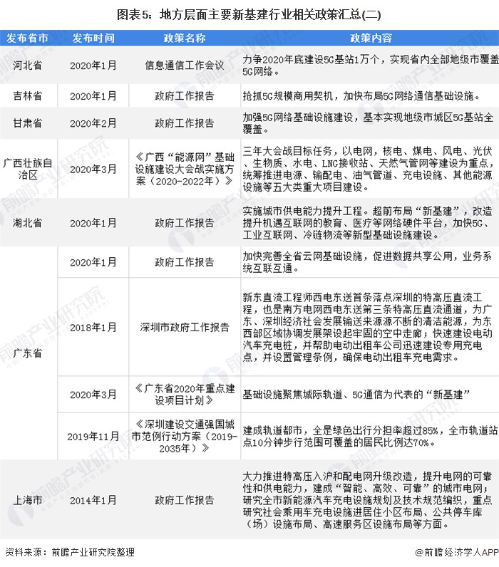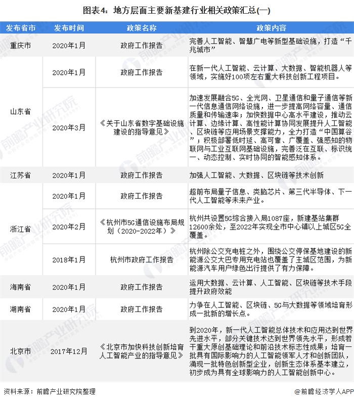 地方层面主要新基建行业相关政策汇总