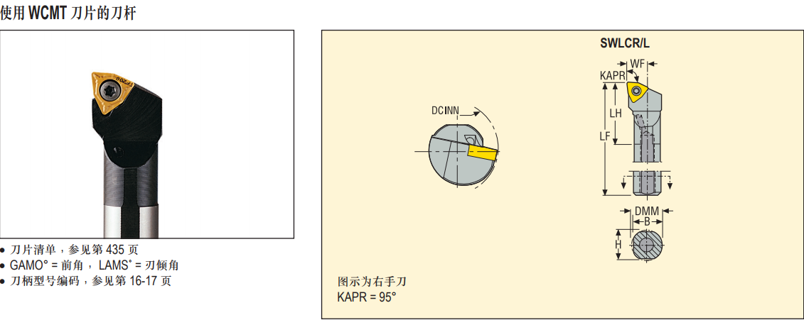 山高-内孔车刀杆-刀片压紧S型-刀片形状W型-刀杆类型L型-主偏角95°-刀片后角7°-内冷通路的钢制刀杆系列-1把