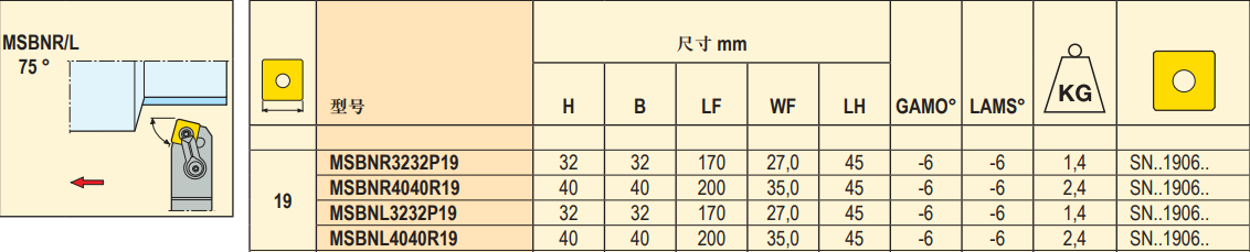 山高-外圆车刀杆-刀片压紧M型-刀杆类型B型-主偏角75°系列-1把
