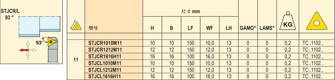 山高-外圆车刀杆-小刀杆-刀片压紧S型-刀杆类型J型-三角形刀片-主偏角93°系列-1把