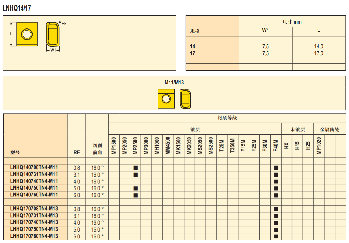 铣削刀片 车削刀片 螺纹刀片 切断切槽 钻刀片