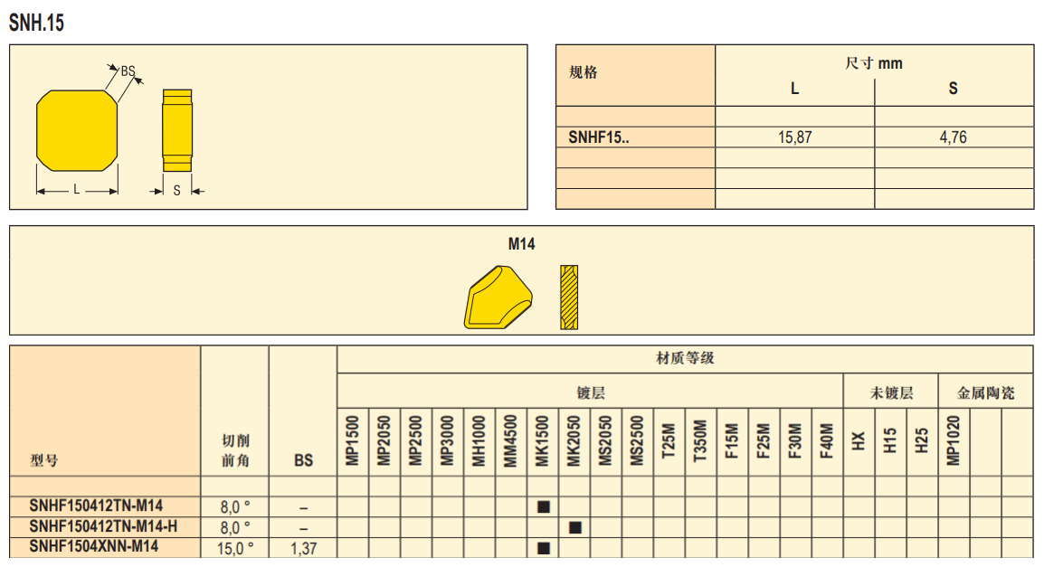 山高-铣削刀片-刀片形状S型-后角0°-公差等级H-MK1500系列-1片