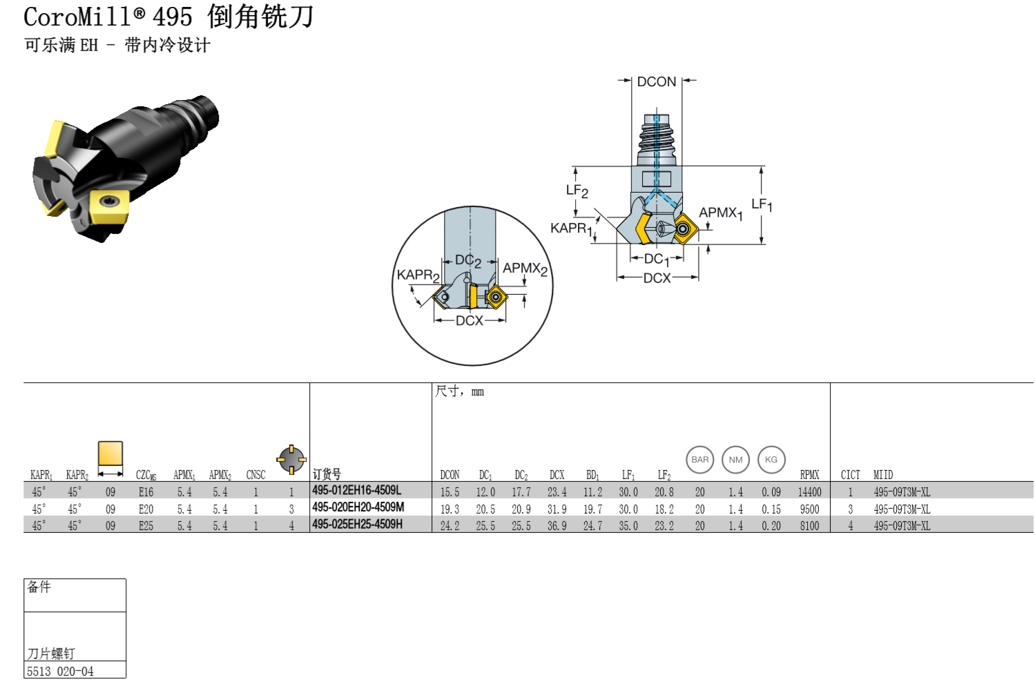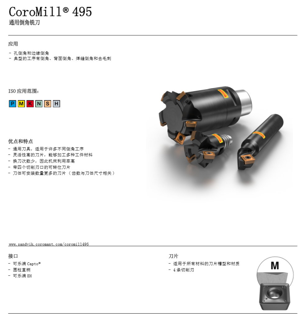 山特维克-CoroMillⓇ 495倒角铣刀-可乐满EH-内冷系列-1支