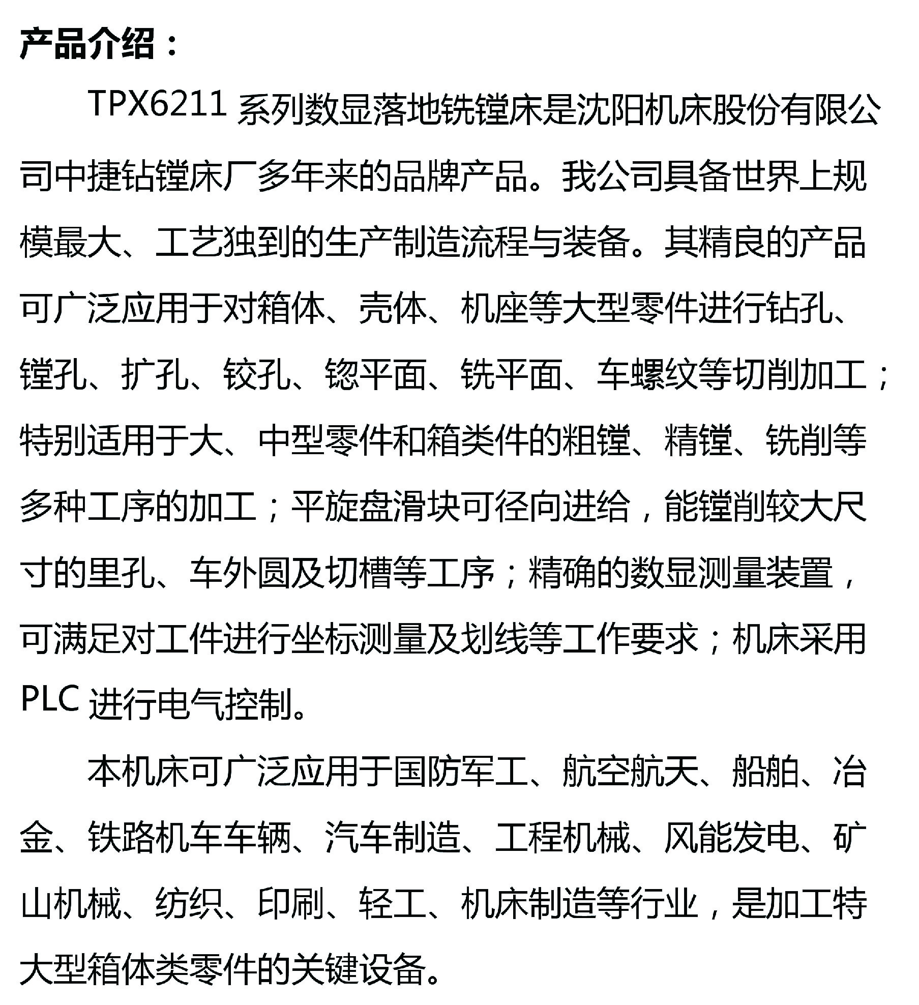 沈阳机床,TPX6211系列数显落地铣镗床,1台