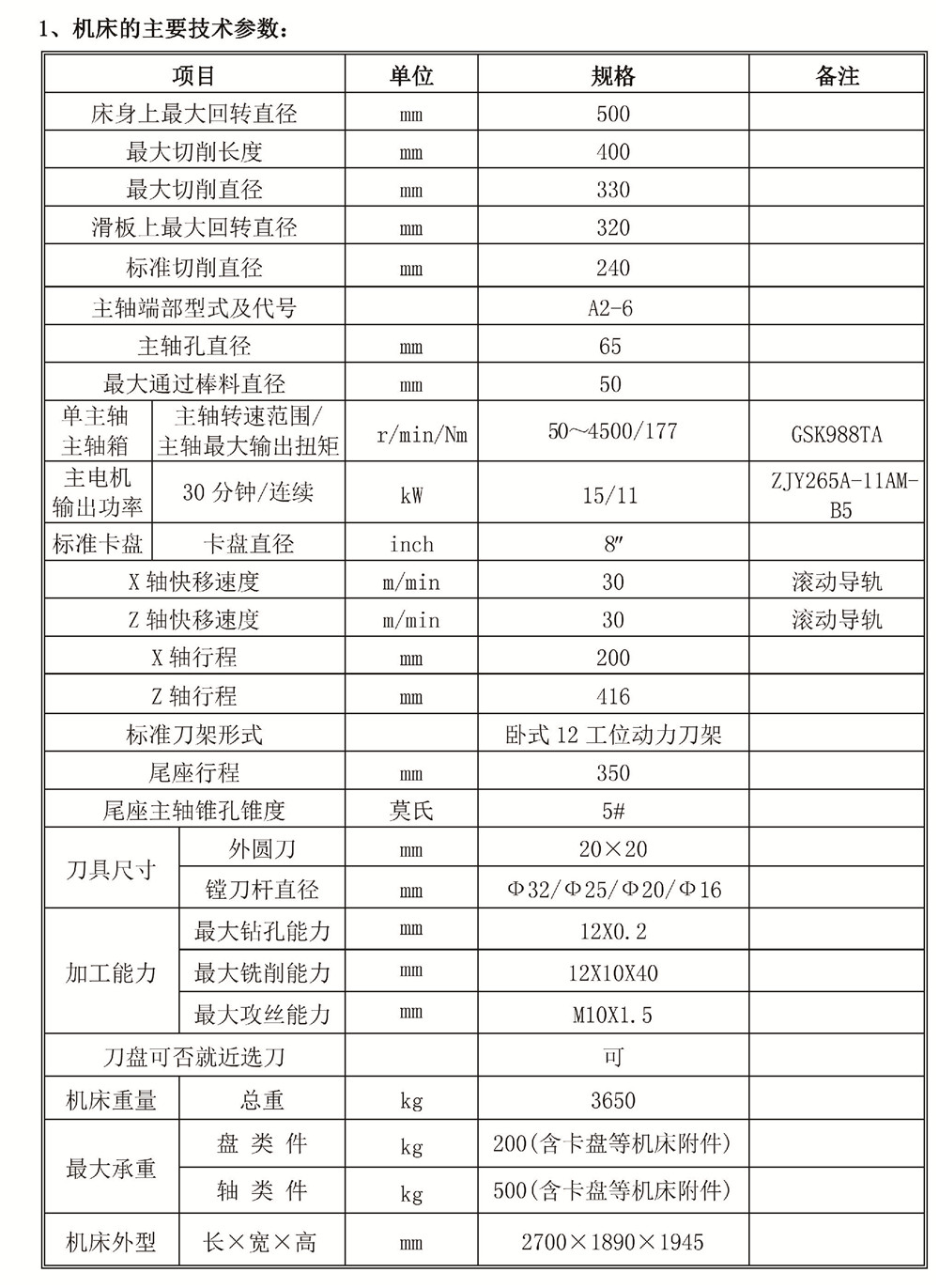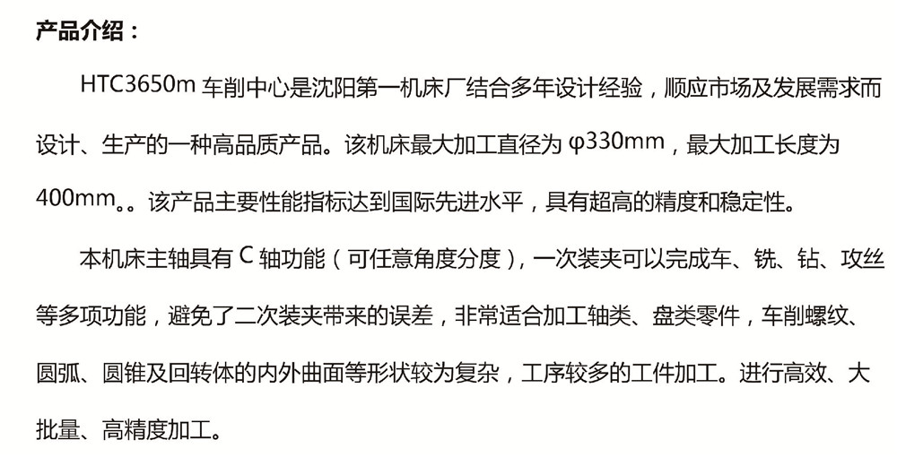 沈阳机床,数控车床-HTC3650m车削中心,A2-6,最大车削直径330mm,最大车削长度400mm,广数系统,1台