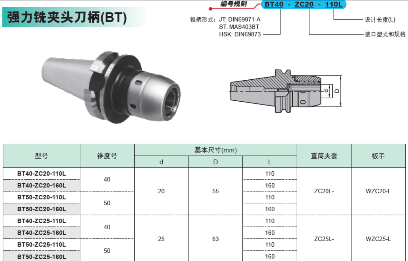 株洲钻石-刀具-刀柄系统-强力铣夹头刀柄-BT系列-1把