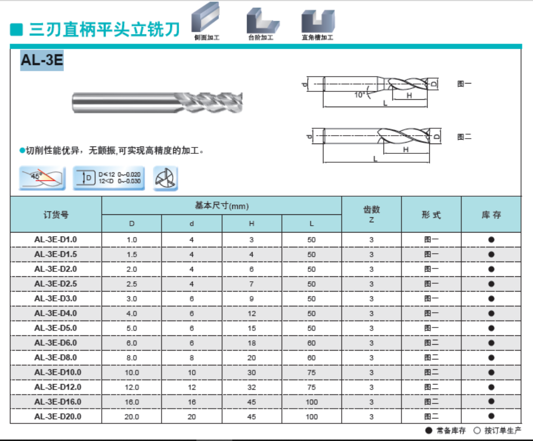 株洲钻石-刀具-平头立铣刀-硬质合金立铣刀-二刃直柄平头立铣刀-AL-3E系列-1把