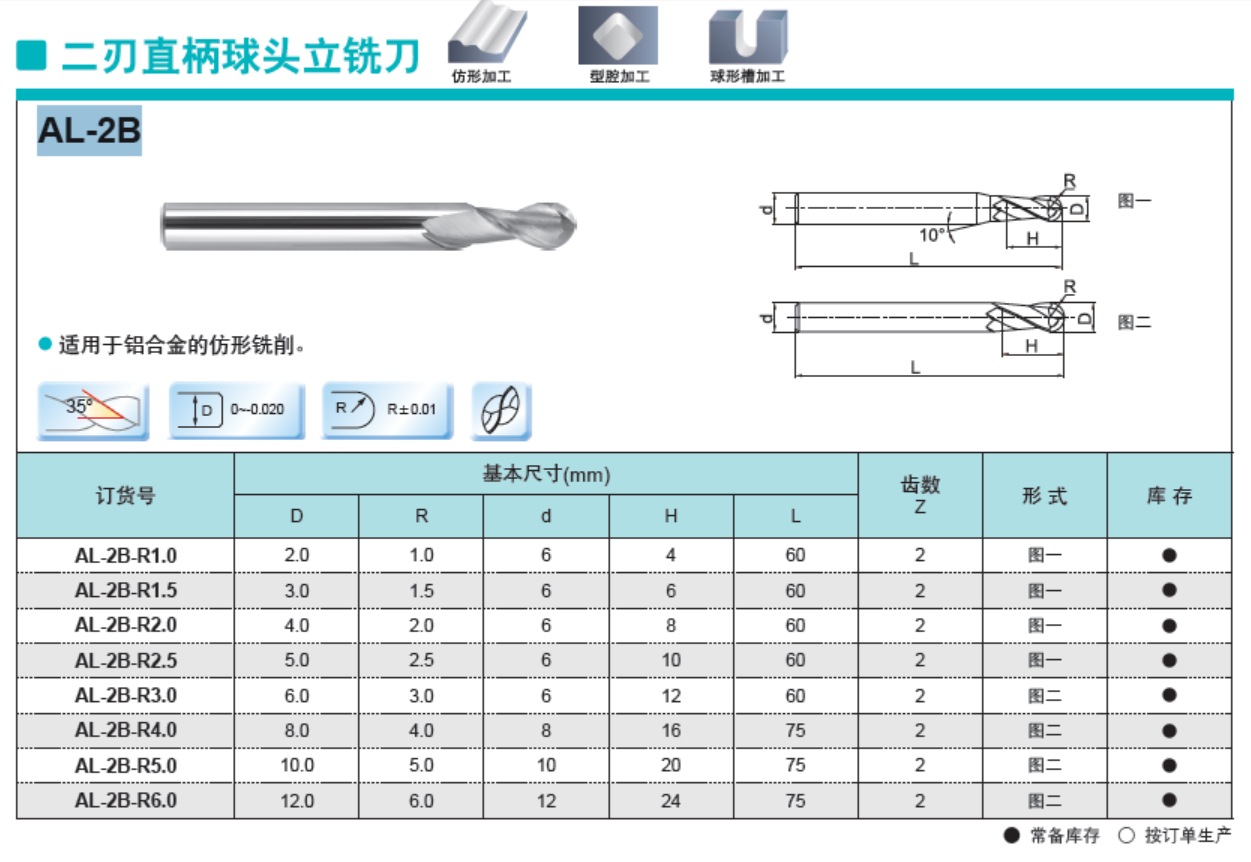 株洲钻石-刀具-球头立铣刀-硬质合金立铣刀-二刃直柄球头立铣刀AL-2B系列-1把