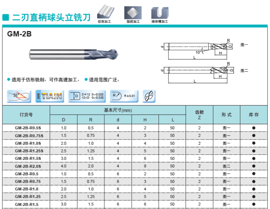 株洲钻石-刀具-球头立铣刀-硬质合金立铣刀-二刃直柄球头立铣刀GM-2B系列-1把