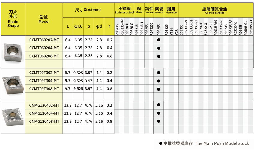 铣削刀片 车削刀片 螺纹刀片 切断切槽 钻刀片