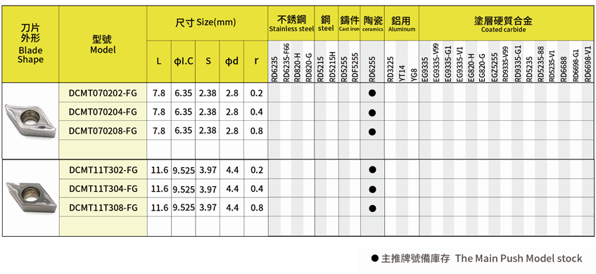 车削刀片-正负角型-DC(DN)系列-FG-1片