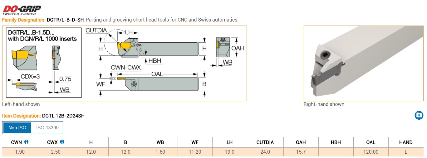 ISCAR-切断切槽刀-DGTL12B-2D24SH-2393438-1把