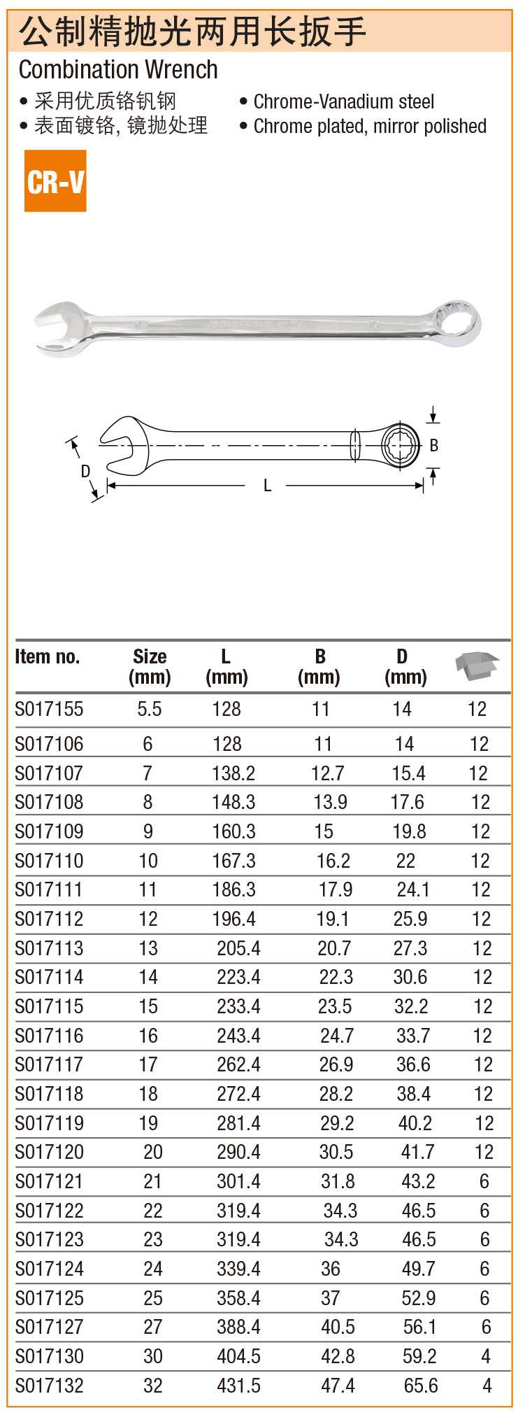 钢盾-公制精抛光两用加长扳手-1个