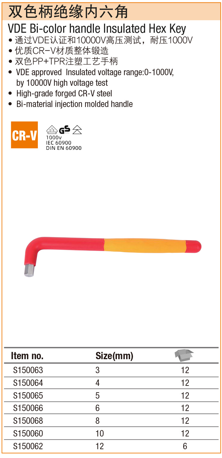 钢盾-双色柄绝缘内六角-1个