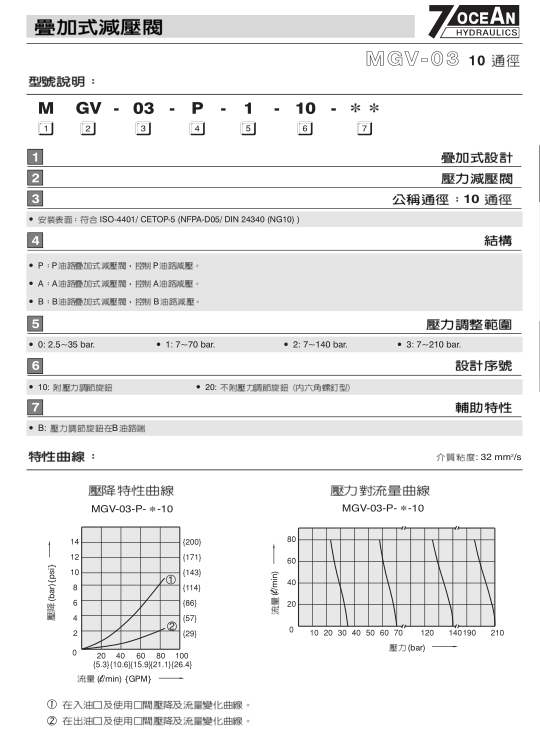 七洋空油压-10通径减压阀-MGV-03系列-1套