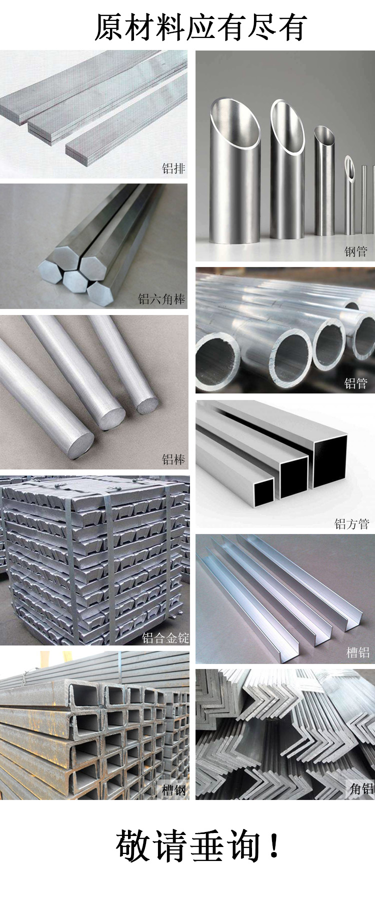 槽铝 锻造铝管 角铝 六角棒 铝棒 铝方管 铝管 铝合金锭 铝排 无缝铝管