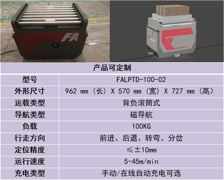 Omniroll欧米瑞,FALPTD-100-02,AGV,自动导引运输车,磁导航,负载100kg,运行速度5-45,1台