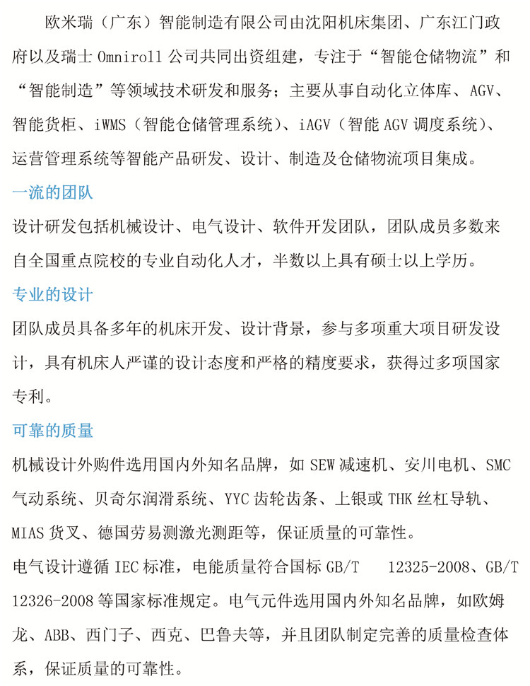 Omniroll欧米瑞,智能仓储物流系统,立体仓库,堆垛机、AGV、码(拆)垛机器人、RGV、输送机、提升机、分拣系统、电控系统和软件信息系统,1套