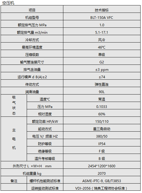 博莱特空压机BLT-150AVFC+博莱特冷干机 BLR175+博莱特过滤器BLF175+储气罐C5-10套装-1套