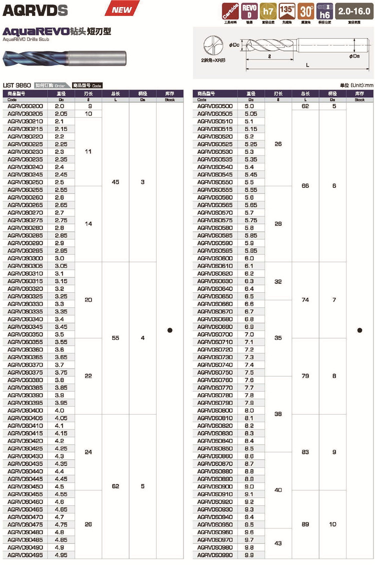 那智不二越NACHI-AquaREVO钻头-短刃标准型-直径4.05-4.5mm,刃长24mm