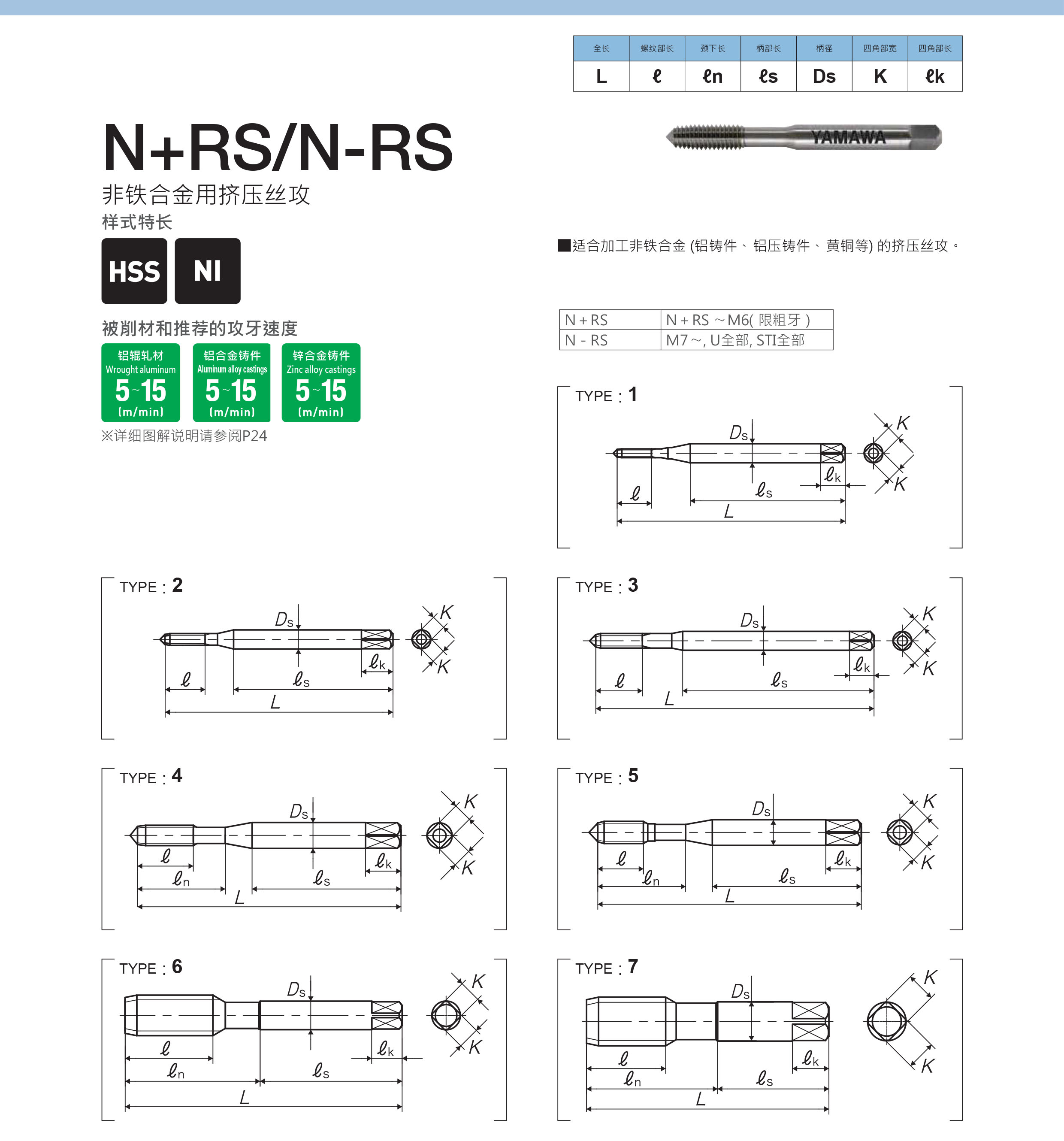 刀具-丝锥板牙-挤压丝锥-YAMAWA-N+RS N-RS系列 (M5-M12)-1把