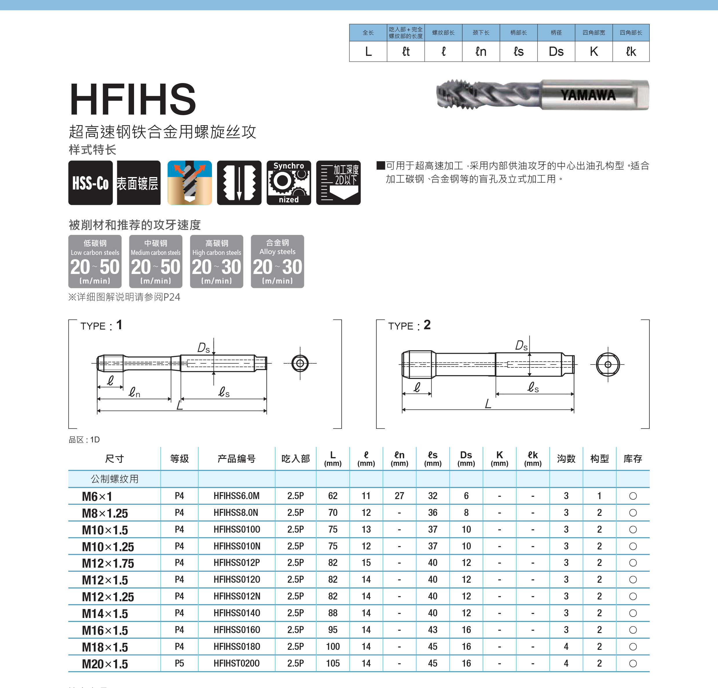 刀具-丝锥板牙-螺旋槽丝锥-螺旋丝锥-YAMAWA(盲孔用)-HFIHS系列-1把