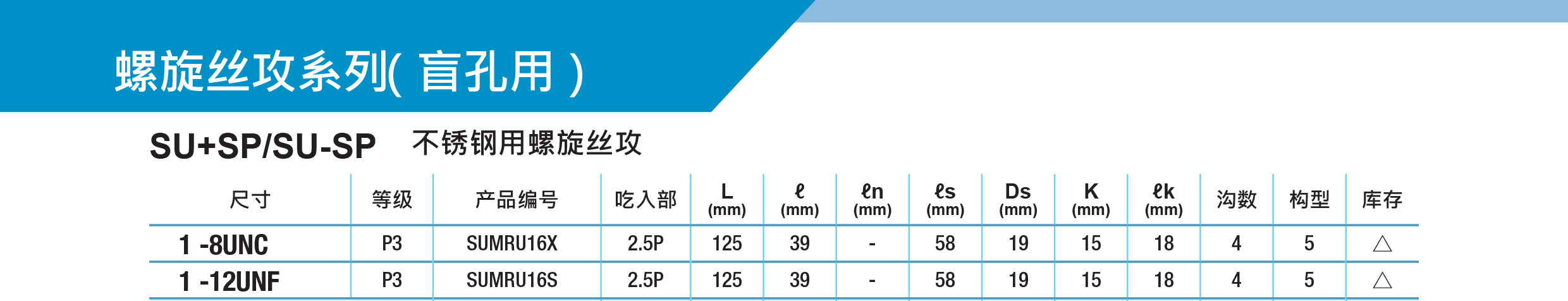 刀具-丝锥板牙-螺旋槽丝锥-螺旋丝锥-YAMAWA(盲孔用)-SU+SP SU-SP系列(美制螺纹No.2-56UNC—1 -8UNC)-1把