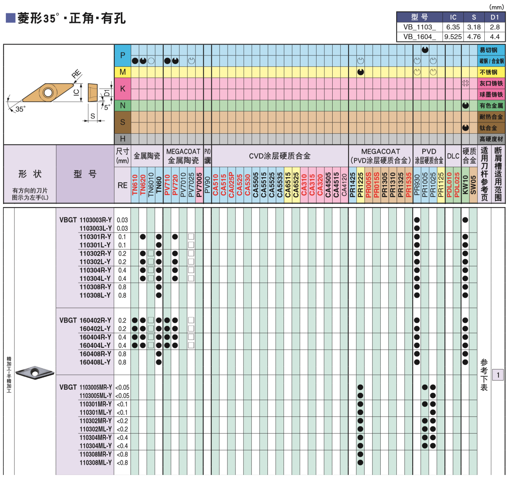 京瓷-车削刀片-菱形35°-正角-有孔-02刀尖-钢件加工-右手刀片-金属陶瓷-1片