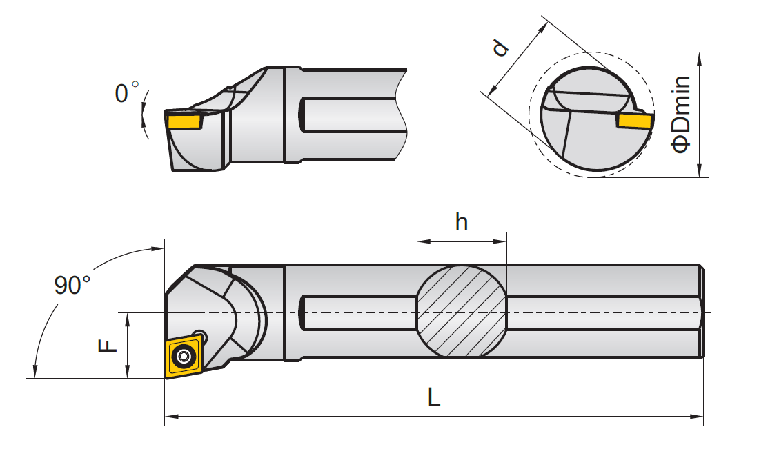 山高-内孔车刀杆-刀片压紧M型-刀片形状C型-刀杆类型L型-主偏角95°-刀片后角0°-钢制实心刀杆系列-1把
