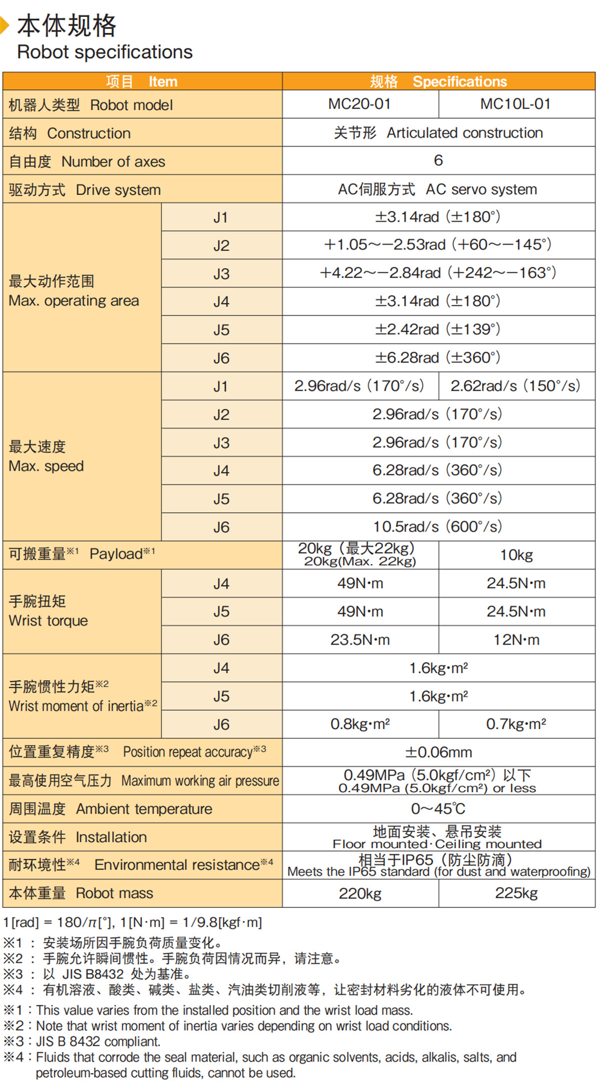 日本NACHI-那智不二越 -MC20-01六轴关节机器人20kg,组装-搬运-上下料-打磨-去毛刺,1台