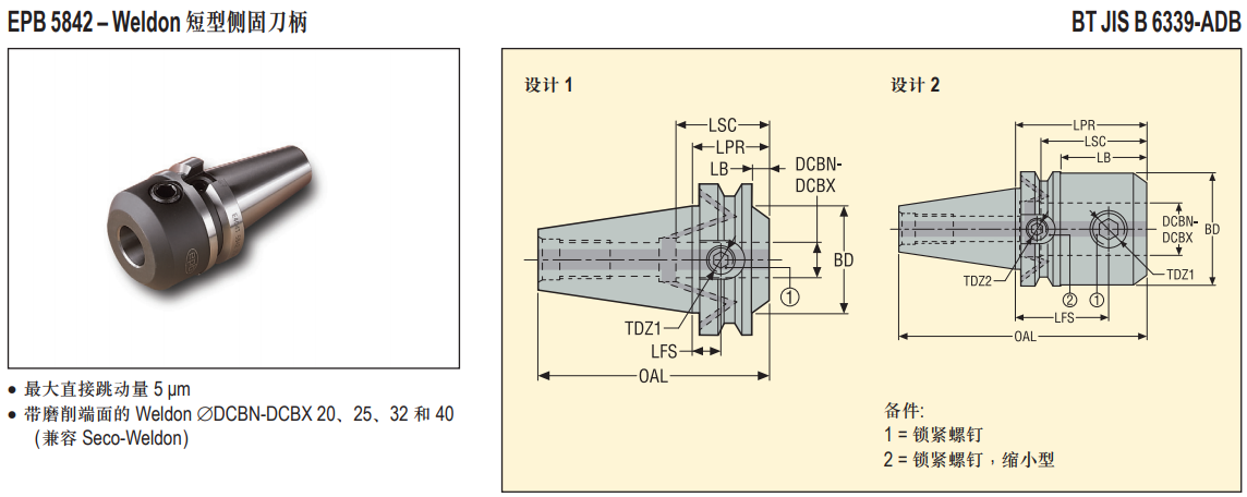 山高-侧固式刀柄-短型侧固刀柄-尾端型号BT50ADB系列-1把