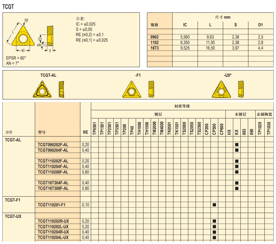铣削刀片 车削刀片 螺纹刀片 切断切槽 钻刀片