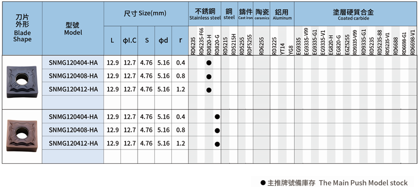车削刀片-负角型-SN系列-HA-1片