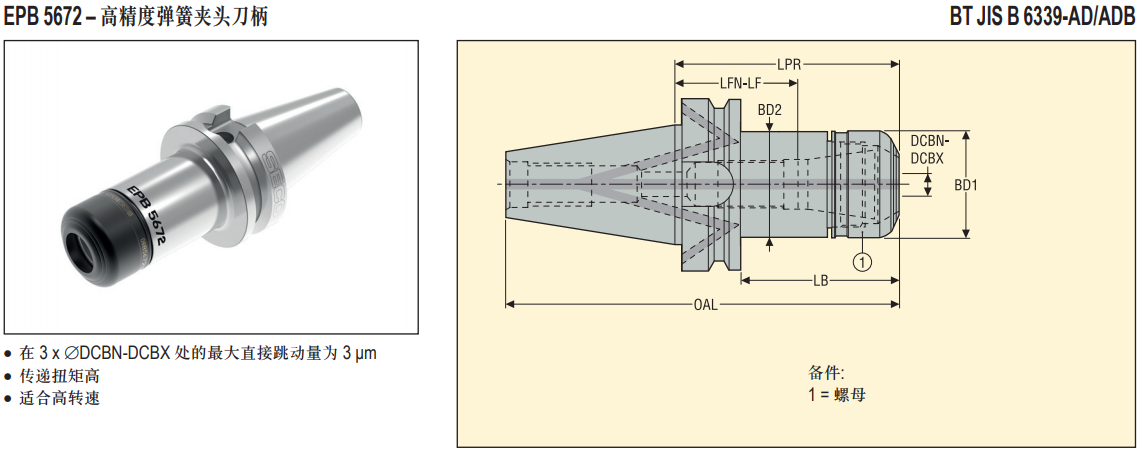 山高-夹头刀柄 -高精度弹簧夹头刀柄-尾端型号BT40ADB系列-1把