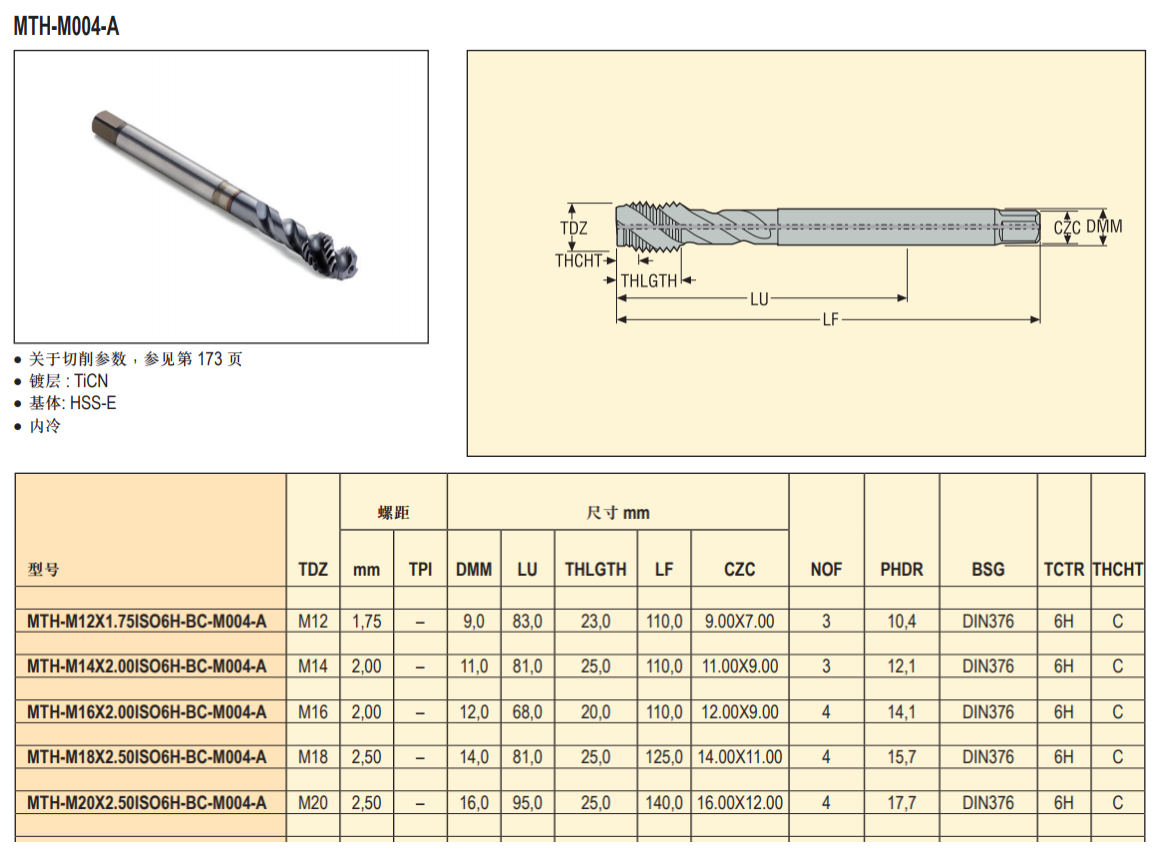 山高-螺旋槽丝锥-盲孔-进入倒角C型-不锈钢-刀具型号04-内冷系列-1把