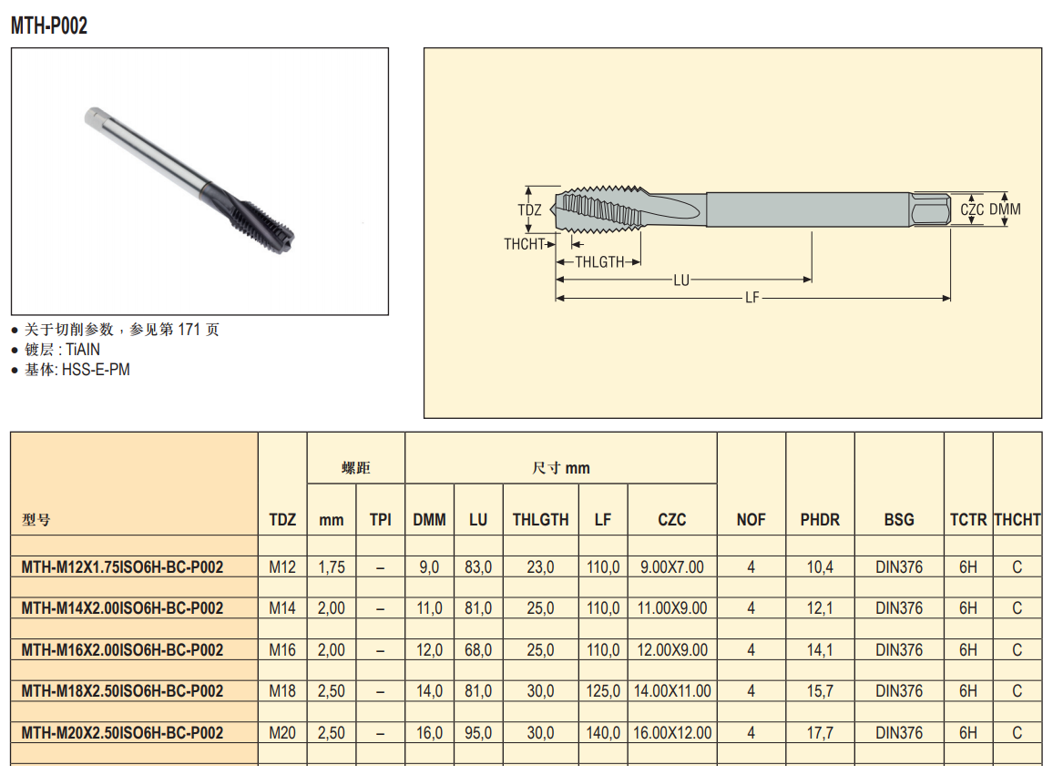 山高-螺旋槽丝锥-盲孔-进入倒角C型-钢件-刀具型号02系列-1把